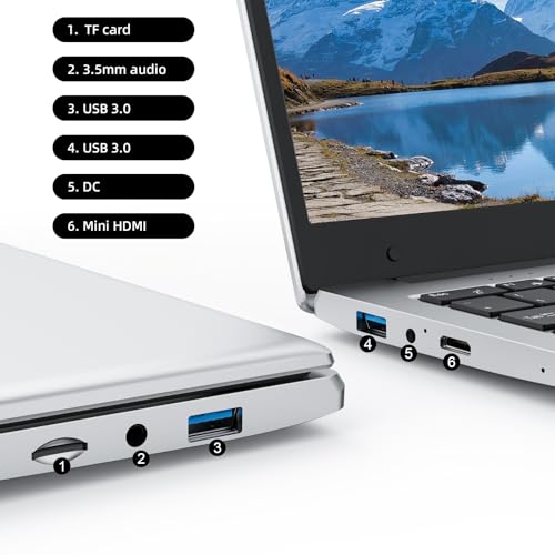 【Rich connection ports】: This work laptop is equipped with USB 3.0 * 1, USB 2.0 * 1, DC jack * 1, and HDMI jack * 1. Can connect more than one devices, expand your workspace, and quickly transfer data to make stronger your productivity. Very suitable for students and business people to use.
