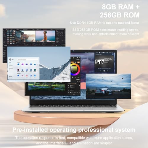 15.6 Inch Laptop Computer 2026, Work Laptops Cerelon Quad-Core N5095 (Up to 2.9GHz) 8GB 256GB SSD 180 Angle Opening 1920 * 1080 IPS Laptop PC WiFi 2.4/5G, BT 5.0, USB 3.0, Mini HDMI