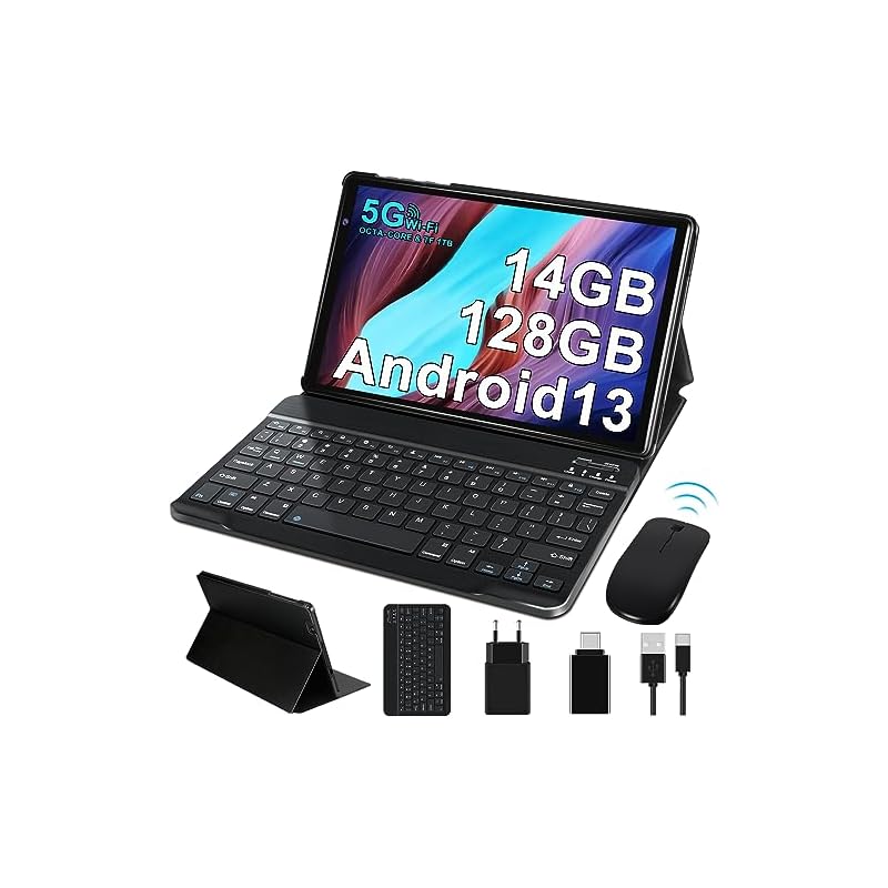 Especificaciones: 2024 Newest Tablet 10 Pulgadas Android 13 Tablet Octa-Core 14GB RAM 128GB ROM (1TB TF), 5G WiFi, 8000mAh, 5MP+8MP, HD IPS, Bluetooth 5.0, Widgets, Tablet con Teclado y Raton – Cuerpo de Metal Grey