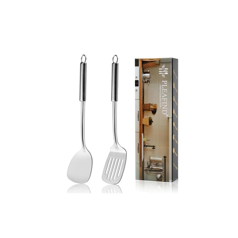 Especificaciones: 2P-Pleafind Juego de espátulas ranuradas de 2 piezas, espátulas de acero inoxidable, utensilios para sartenes, artÃculos para el hogar, cocina y restaurantes, aptas para lavavajillas