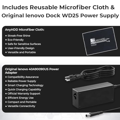 40A90090US – Paquete de doble monitor con adaptador de CA de 90 W + paño de microfibra (renovado)