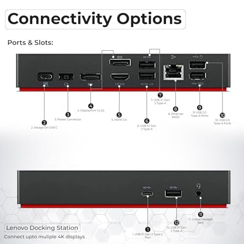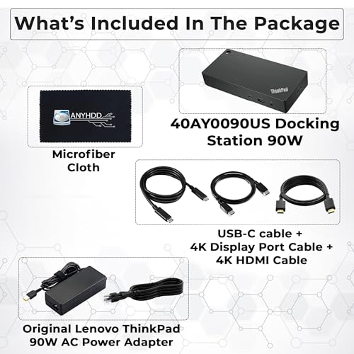 40AY0090US – Estación de acoplamiento para monitor doble, estación de acoplamiento USB C, base Thinkpad con adaptador de CA + cable HDMI + cable DisplayPort + cable USB C + paño de microfibra