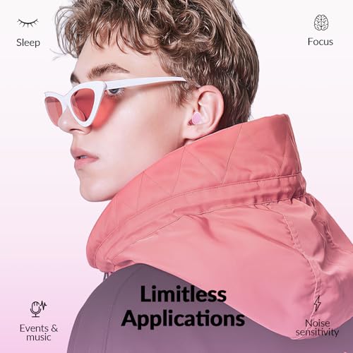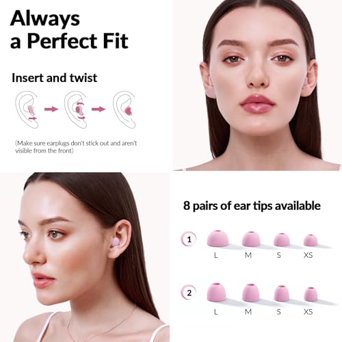 55dB Ear Plugs for Sleeping Noise Cancelling, Noise Reduction Earplugs for Sleep, Snoring, Reusable Noise Cancelling Ear Plugs for Concerts, Work, Airplane, Silicone Sleep Earplugs with 8 Tips Pink