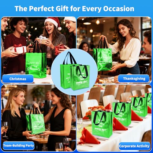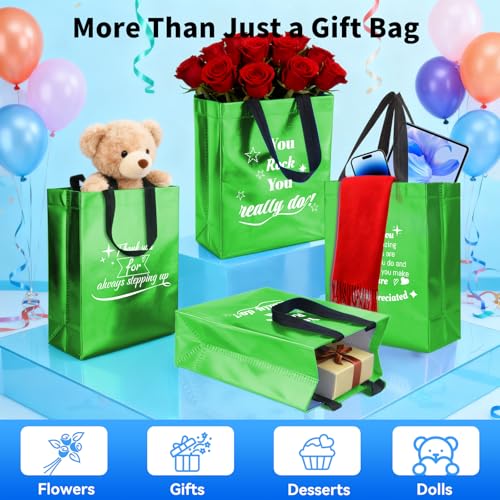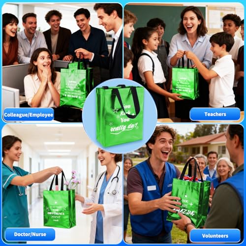 Una manera significativa de mostrar aprecio a los empleados: este juego incluye 40 bolsas de regalo reutilizables verdes (10 x 8 x 4 pulgadas) con 40 pañuelos, lo que las hace ideales para la apreciación de los empleados. Adecuado para la apreciación del personal durante la semana de servicios ambientales o eventos de formación de equipos. Ya sea para regalos de la semana de limpieza, regalos de enfermeras o regalos de agradecimiento para profesores, estas bolsas son un gesto práctico que mejora cualquier celebración en el lugar de trabajo.