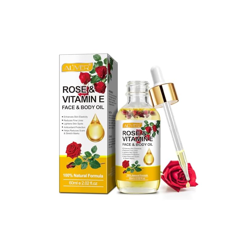 Aceite de Rosa y Vitamina E para Cara y Cuerpo, Hidratante, Antienvejecimiento y Antiarrugas, Reduce LÃneas Finas y Manchas, 100% Puro Natural Aceite Esencial de Rosa para Cicatrices, EstrÃas, 60ml