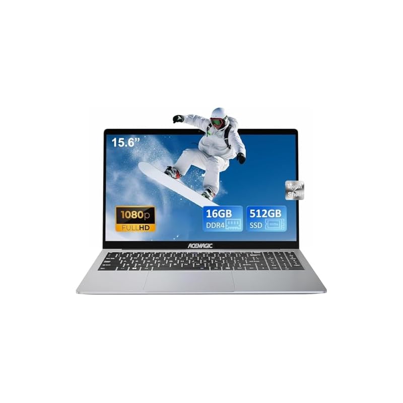 ACEMAGIC 2025 Ordenador Portátil 15,6 Pulgadas Nuevo Procesador lntel Alder Lake N150 DDR4,16 GB RAM 512 GB SSD Expandir 2 TB,3*USB3.2,WiFi,HDMI,Cuerpo metálico