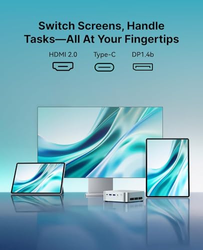 Impresionante productividad de triple pantalla 4K: conecta hasta tres monitores 4K a través de HDMI/DisplayPort para multitarea inmersiva. Ya sea que esté procesando números, transmitiendo contenido o diseñando gráficos, este micro PC maximiza los bienes raíces de la pantalla para una eficiencia inigualable.