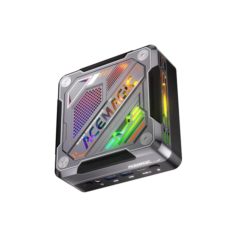 ACEMAGIC Mini PC Gaming RGB, AMD Ryzen 7 8845HS (hasta a 5,1 GHz) 32 GB DDR5 512 GB NVME PCIE 4.0 SSD Mini Ordenadores de Sobremesa, AMD Radeon 780 M| BT5.2| Wi-Fi 6| 8K
