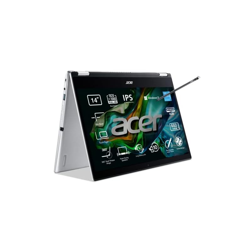 Especificaciones: Acer Spin 1 SP114-31N – Ordenador Portátil Táctil 14″ Full HD LED IPS(Intel Celeron N5100, 4GB RAM, 128GB SSD, Intel UHD Graphics, Windows 11 Home S, Stylus pen) Silver, Teclado QWERTY Español