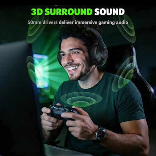 3D Surround Sound and 40H Battery: Experience more immersive gameplay with this 3D surround sound headset, designed to make audio feel deeper and more engaging. With up to 40 hours of battery life, this surround sound gaming headset is able for longer sessions with fewer charging breaks