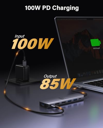 Transferencia de datos de 5 Gbps y carga rápida PD de 100 W: 3 puertos USB 3.0 con velocidades de transferencia de 5 Gbps, lo que permite transferencias rápidas de fotos o video sin demoras. Y también conecta dispositivos externos como mouse, teclado, etc., ideal para fotógrafos y diseñadores. También admite carga rápida de hasta 100 W para dispositivos como computadoras portátiles y tabletas, lo que garantiza que no se quede sin energía.