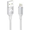 【Cable Lightning con Certificación Mfi】El Cable USB iPhone cuenta con un conector C94 premium y ha cumplido con los requisitos de certificación MFi. El Cable USB Lightning con Certificación Mfi no mostrará mensajes de advertencia, protegiendo su batería de sobretensión y sobrecorriente, y garantizando su seguridad y la de su dispositivo Apple.