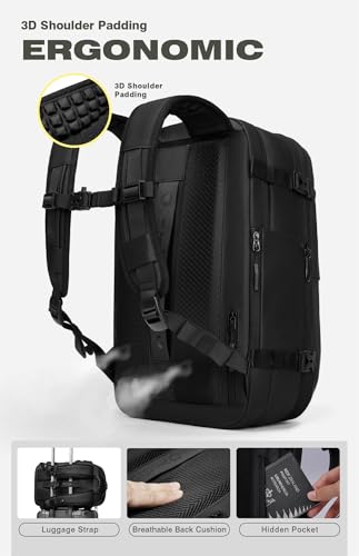 Tu compañero de viaje ideal: la mochila AirVault viene equipada con un bloqueo de combinación aprobado por la TSA, puertos de carga USB 4.0, una correa de fijación de equipaje, correas de hombro gruesas y ensanchadas, materiales transpirables y cremalleras de alta calidad.
