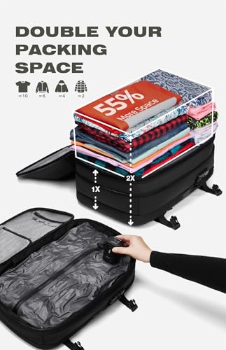 Revolucionaria tecnología de compresión al vacío: la mochila AirVault cuenta con un sistema de compresión al vacío integrado con una bomba de aire integrada, capaz de almacenar 18-20 prendas de resorte y reducir el espacio de almacenamiento en más del 50% (aún más para chaquetas de plumón). Cuando está completamente expandida, la mochila logra una impresionante capacidad de 70 L, comparable a una maleta de 24 pulgadas.