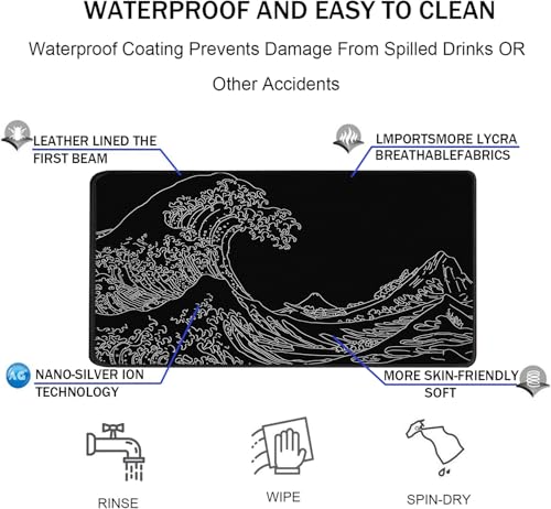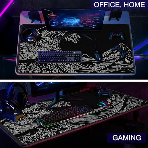 Esta alfombrilla grande para mouse para juegos, con tamaño XL de 31.5 x 15.7 pulgadas, proporciona un amplio espacio para adaptarse a tu mouse de juegos, teclados para juegos, teclado mecánico de tamaño completo y otros artículos de escritorio. Mantén tu escritorio de teclado para juegos limpio y ofrece una gran área amplia para que el teclado y el mouse se muevan. Nuestra alfombrilla grande para mouse se adapta perfectamente a diferentes escritorios de oficina y juegos, se puede utilizar como alfombrilla de teclado, almohadilla de escritorio, almohadilla de escritura o protector de plataforma. La gran alfombrilla de mouse para escritorio para teclado de juegos, superficie de escritorio de material impermeable evita eficazmente daños accidentales por derrames de líquidos como agua, café y jugo. Cuando el líquido salpica en el tapete de escritorio, fácil de limpiar sin demorar que estés trabajando o jugando. La alfombrilla para mouse de escritorio extra grande cuenta con bordes cosidos duraderos que evitan que tu alfombrilla grande de mouse para juegos se deshilachen y se desgomen, asegurando que la alfombrilla de teclado para juegos durará años.