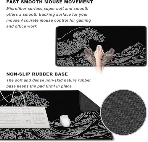 Alfombrilla multifuncional para mouse grande: esta alfombrilla de mouse grande mide 31.5 x 15.7 pulgadas, el tamaño extragrande proporciona mucho espacio para una computadora portátil, mouse para juegos, teclado u otros artículos de juego. Su superficie lisa y plana se puede utilizar como alfombrilla de mouse para juegos, alfombrilla de mouse grande y almohadilla de escritura.