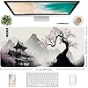 Alfombrilla de mouse para juegos con diseño de flor de cerezo en acuarela, base de goma antideslizante, tapete de escritorio para teclado y oficina en casa, 31.5 x 11.8 pulgadas