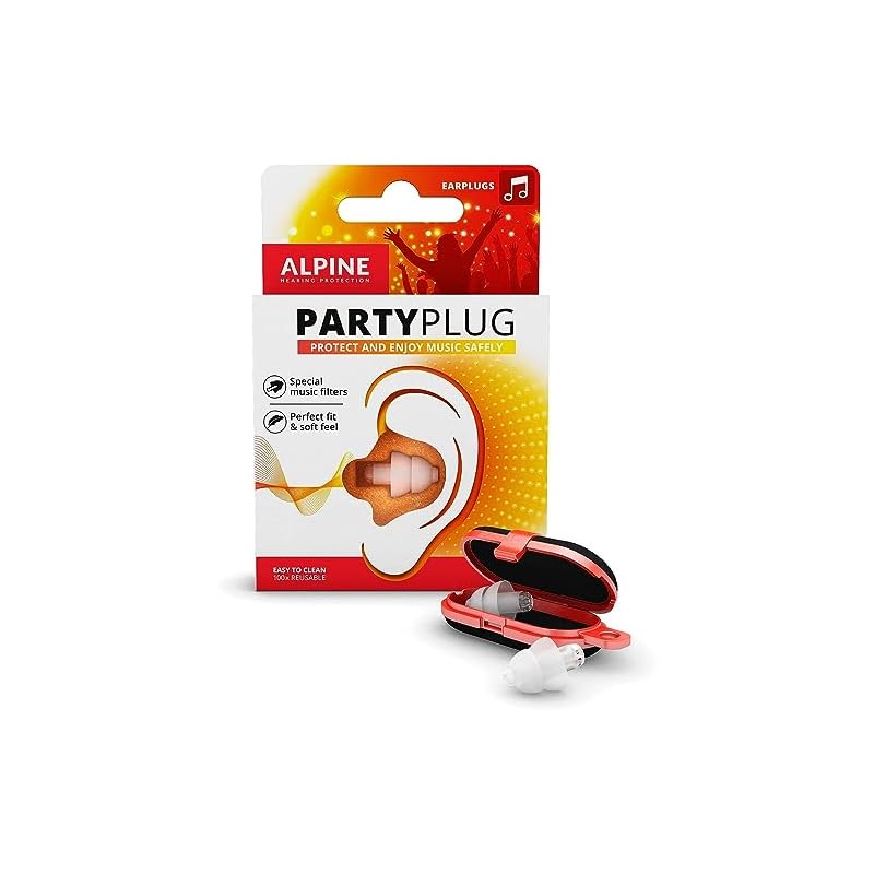 TAPONES PARA LOS OÍDOS. PartyPlug está pensado más para los asistentes a conciertos y eventos musicales. 2 tapones para los oídos con un sistema de filtros fijos. Los tapones para los oídos PartyPlug protegen sus oídos contra el ruido excesivo de la música. Al mismo tiempo, los filtros especiales acústicos garantizan que la música y otros sonidos ambiente como el habla permanecen claramente audibles, así podrá disfrutar, de manera óptima, de la música. Los tapones para los oídos Alpine PartyPlug no causan ningún tipo de presión desagradable en los oídos, y no dan sensación de aislamiento.