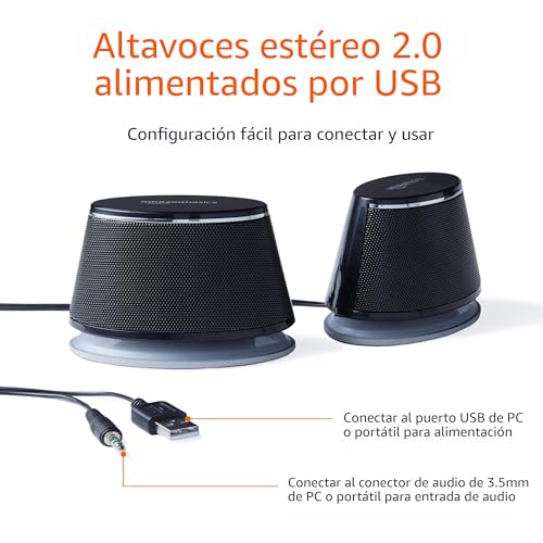 Amazon Basics 2 altavoces USB Plug-n-Play para PC o portátil, color negro – Juego de 2