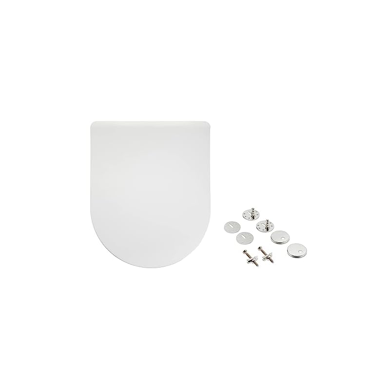 Amazon Basics Asiento de inodoro de urea En forma de D, acabado mate, Blanco, 36.5 x 43 cm