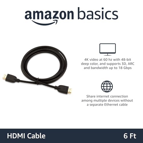 Amazon Fundamentals – Cable HDMI de alta velocidad (18 Gbps, 4K/60 Hz), 6 pies, colour negro