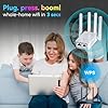 ¿ ¡Nuestro extensor Wi-Fi lo resuelve! Cubre hasta15555 pies cuadrados, desde la cocina hasta el ático. Fuerte penetración rompe a través de muros de hormigón, sin zonas muertas. Ideal para transmisión diaria, videollamadas y dispositivos domésticos inteligentes. Lo más importante es que es fácil de configurar, no se necesitan habilidades tecnológicas. ¡Disfruta de una cobertura WiFi completa en minutos!