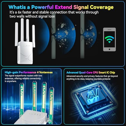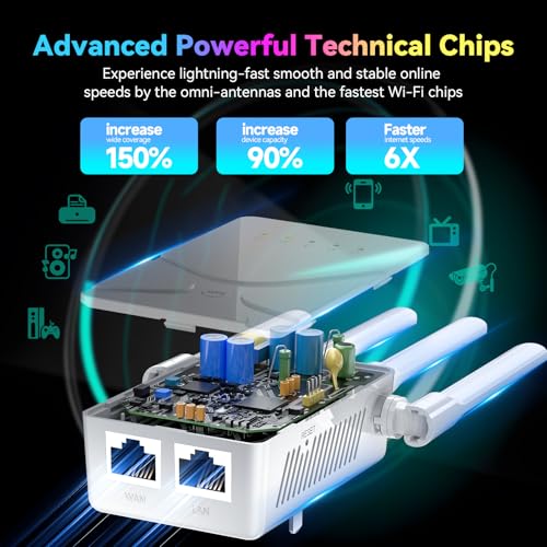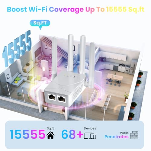 Especificaciones: Amplificador de señal WiFi 2026 para el hogar, repetidor de Internet de largo alcance de 15555 pies cuadrados – 95% más rápido, amplificador de enrutador inalámbrico más fuerte con puerto Ethernet