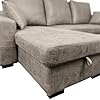 amuéblate online Sofá Cama con Chaise Longue Reversible y Arcón de Almacenaje Modelo Nara, Diseño Moderno, Práctico y Funcional, Madera, Gris, 253cm (Largo) x 154cm (Fondo) x 100cm (Alto)