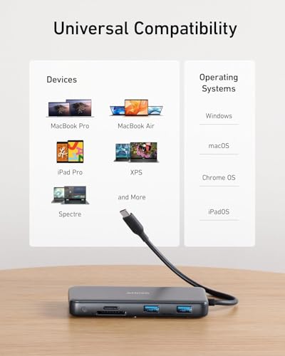 Especificaciones: Anker Hub USB-C 555 (8 en 1), con entrega de energía de 85 W, puerto HDMI 4K 60Hz, puertos USB C de 10 Gbps y 2 A de datos, lector de tarjetas SD microSD Ethernet, para MacBook Pro Más