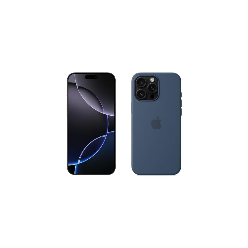 PACK DE IPHONE 16 PRO MAX Y FUNDA DE SILICONA AZUL DENIM – Este pack contiene un iPhone 16 Pro Max de Apple y una funda de silicona azul denim de Apple para el iPhone 16 Pro Max. La pareja perfecta!