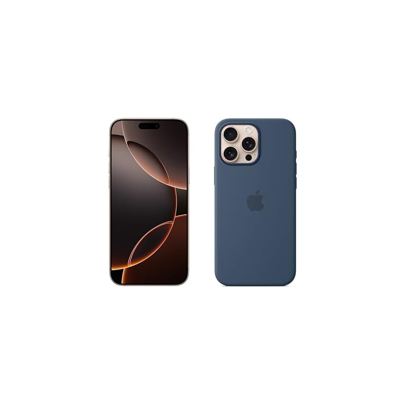 PACK DE IPHONE 16 PRO MAX Y FUNDA DE SILICONA AZUL DENIM – Este pack contiene un iPhone 16 Pro Max de Apple y una funda de silicona azul denim de Apple para el iPhone 16 Pro Max. La pareja perfecta!