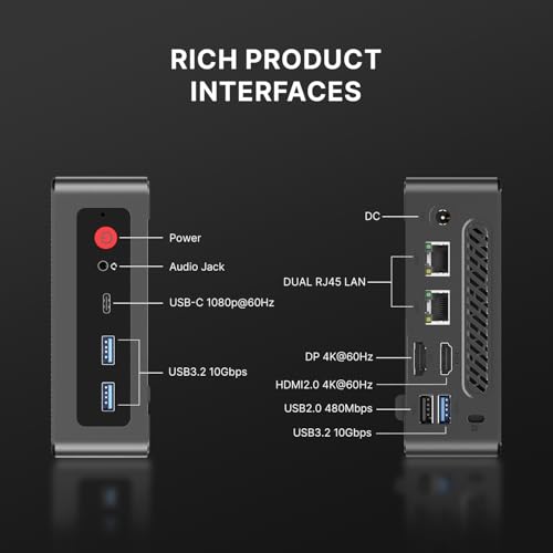 Especificaciones: AS1 Ryzen 5 Mini PC Dual LAN, 16GB RAM 512GB PCIe SSD Mini escritorio, USB-C/HDMI/DP/Wi-Fi 5/BT 5.0, oficina, hogar