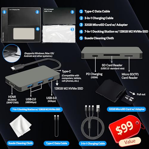 RAM DDR4 de 4 GB: un montón de ancho de banda alto para ejecutar múltiples programas simultáneamente sin ninguna ralentización. 【Almacenamiento de 224 GB】Juego de estación de acoplamiento eMMC de 64 GB + 160 GB, espacio de almacenamiento masivo para tus archivos, aplicaciones y contenido multimedia, proporcionando acceso a datos rápido y confiable.