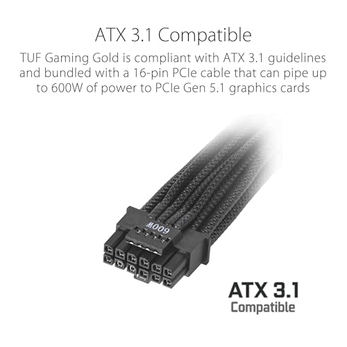 Compatibilidad con ATX 3.0: TUF Gaming Gold cumple con las directrices ATX 3.0 y viene con un cable PCIe de 16 pines que puede canalizar hasta 600 W de potencia a tarjetas gráficas PCIe Gen 5.0.