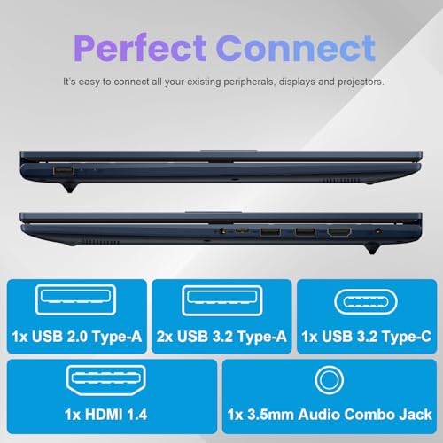 Especificaciones: ASUS Vivobook 17 – Laptop con pantalla FHD de 17.3 pulgadas, Intel Core i3, 36 GB de RAM, SSD PCle de 1 TB, cámara web, Wi-Fi, Bluetooth, HDMI, Windows 11 Home, azul silencioso, paquete con enfriador