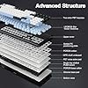 Teclas PBT y batería de 8000 mAh: 99 teclas El teclado compacto de diseño del 96% puede ahorrar más espacio en el escritorio mientras mantiene las teclas de flecha necesarias y el área numérica para juegos y trabajo. El teclado recargable incorpora una batería de gran capacidad de 8000 mAh para proporcionar más energía y una mayor duración de la batería. Las teclas PBT de doble disparo, hechas de material de dos colores moldeados entre sí, hacen que los personajes de las teclas mantengan la vitalidad y la saturación, sean claras y no se desvanezcan