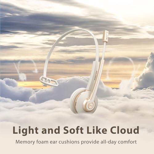 Diseño cómodo y extraordinario: pesa solo 1.7 onzas, a diferencia de las versiones anteriores de auriculares inalámbricos USB. Las almohadillas de cuero sintético suave y la diadema ajustable reducen la presión sobre tu cabeza. Los auriculares Bluetooth Trucker te proporcionan una experiencia de uso cómoda para un uso intensivo durante todo el día. Esquema de color oro blanco brillante y diseño de oreja única, se pueden usar tanto la oreja izquierda como la derecha.