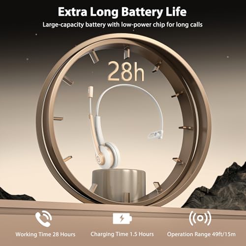 【Bluetooth 5.2 ampliamente compatible】: los auriculares inalámbricos para trabajo se adaptan a la última versión 5.2 de Bluetooth, ampliamente compatibles con teléfonos celulares, portátiles, computadoras, tabletas y otros dispositivos Bluetooth. Estos auriculares para computadora con micrófono admiten dos conexiones de dispositivos. Proporciona total libertad inalámbrica con rango de funcionamiento de 49 pies.