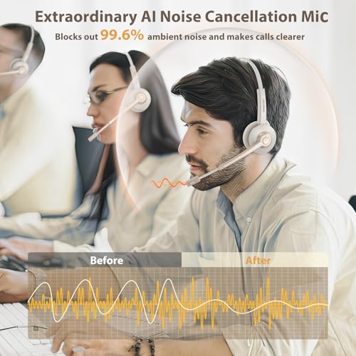 Cancelación de ruido AI: los auriculares inalámbricos con micrófono con micrófono optimizado de alta definición reducen el ruido de fondo y captan tu voz con una claridad excepcional. Los avanzados controladores de audio de 1.575 in proporcionan un sonido ultra claro para ti. Una combinación de un sistema de micrófono avanzado y una cancelación de ruido excepcional garantiza una comunicación clara. Perfecto para cuando estás trabajando o estudiando desde casa o tomando llamadas de conferencia, en el automóvil y al aire libre.