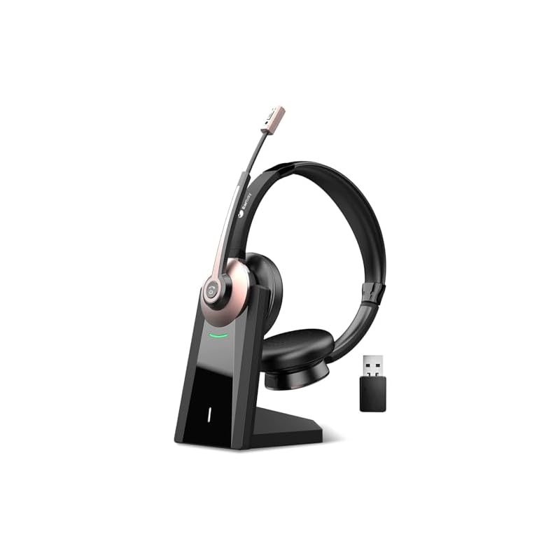 Auriculares inalámbricos, auriculares Bluetooth con micrófono con cancelación de ruido y dongle USB, auriculares inalámbricos con silencio de micrófono y base de carga para PC, computadora, teléfono
