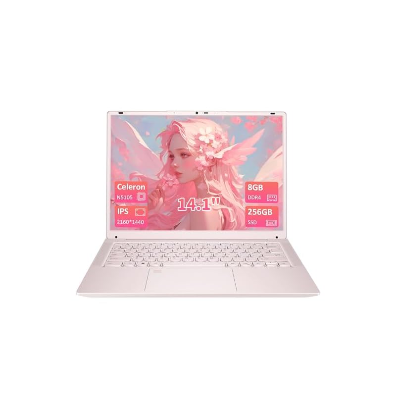 Especificaciones: Auusda Ordenador portátil de 14 Pulgadas, Resolución 2560 x 1440, CPU Celeron N5105 (hasta 2,9 GHz), 8 GB DDR4 256 GB SSD,Mini HDMI, USBx2, Micro SD,Ordenador Portátil Rosa para Estudiantes/Negocios