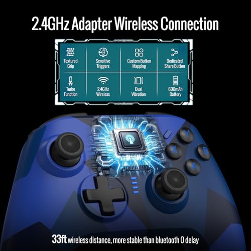 BETMI for Wireless Xbox Controller with 2.4GHz Adapter/Macro Programmable/Remappable/Dual Vibration/Turbo Function, Game Controller Compatible with Xbox One, Xbox Series X/S, PC (Blue Camouflage)