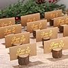Bixury 30 Piezas Soporte Tarjetas Madera,Porta Tarjetas de Madera Soportes de Tarjetas de Madera Tocón con 30 Tarjetas Para Bodas Tarjetas de Mesa Números para fotos nombres tarjetas para bodas fiesta