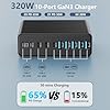 Especificaciones: Bloque de cargador USB C de 320 W, estación de carga USB C de 10 puertos GaN III PD 65 W, adaptador de cargador rápido para computadora portátil MacBook Pro/Air, DELL, iPad, iPhone, Samsung Galaxy