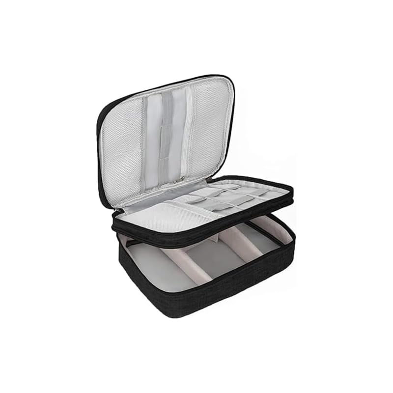 Material impermeable — Las bolsas negras para accesorios electrónicos están hechas de tela Oxford 300D, que es un material catiónico impermeable con un tacto suave. Es duradero y resistente a las arrugas. Su solidez del color es alta, fácil de limpiar y no se desvanece fácilmente. La bolsa de almacenamiento también utiliza cremallera doble, las cremalleras se pueden abrir y cerrar libremente. Te ayuda a usarlos más fácilmente