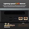 👍【Primer mini PC con altavoces integrados】Con DSP de doble canal, optimiza la voz humana y la banda de frecuencia de voz, aporta una experiencia de sonido clara. Como mini PC de escritorio, no necesitas altavoces externos para jugar, ver videos y disfrutar de la música, haciendo que tu computadora de escritorio sea más versátil y ahorra espacio en el escritorio.
