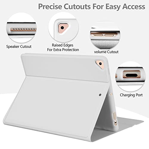 Función de apagado y encendido automático: esta funda para iPad de 9ª generación con teclado tiene una función de apagado y encendido automático. Permite que tu tablet entre automáticamente en modo de suspensión cuando cierras la funda y se despierta automáticamente de nuevo cuando abres la funda, lo que es ideal para ahorrar energía. Para lograr el máximo efecto de la función de encendido automático del sueño, retira el teclado inalámbrico magnético, ya que el teclado con hierro puede reducir la atracción mutua entre los imanes.