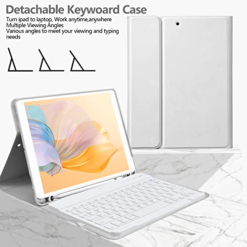 BQSS Funda para iPad de 9ª generación con teclado de 10.2 pulgadas, funda de teclado Bluetooth inalámbrica desmontable con soporte para lápiz para iPad 9ª/8ª/7ª, para iPad Air 3ª generación/Pro de