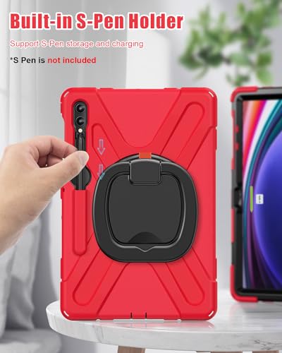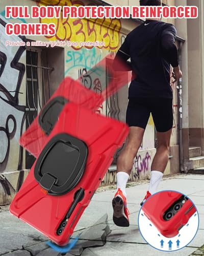 BRAECN Funda para Samsung Galaxy Tab S10+/S9 FE+/S9+ de 12.4″ 2024 SM-X820/X610/X810, funda de silicona a prueba de golpes con protector de pantalla y soporte para bolígrafo /correa de hombro/soporte para Galaxy Tab S8+/S7 FE/S7+, color rojo