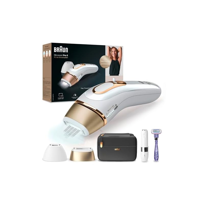 Braun Silk-expert Pro 5 Depiladora Mujer/Hombre Luz Pulsada IPL, Cabezal de Precisión Ancho y Maquinilla de Afeitar Venus, Alternativa a la Depilación Láser en Casa, PL 5149, Blanca/Dorada